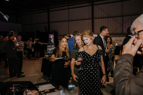 Winning bidders proceed to the check out station located in the Maloney Hangar.